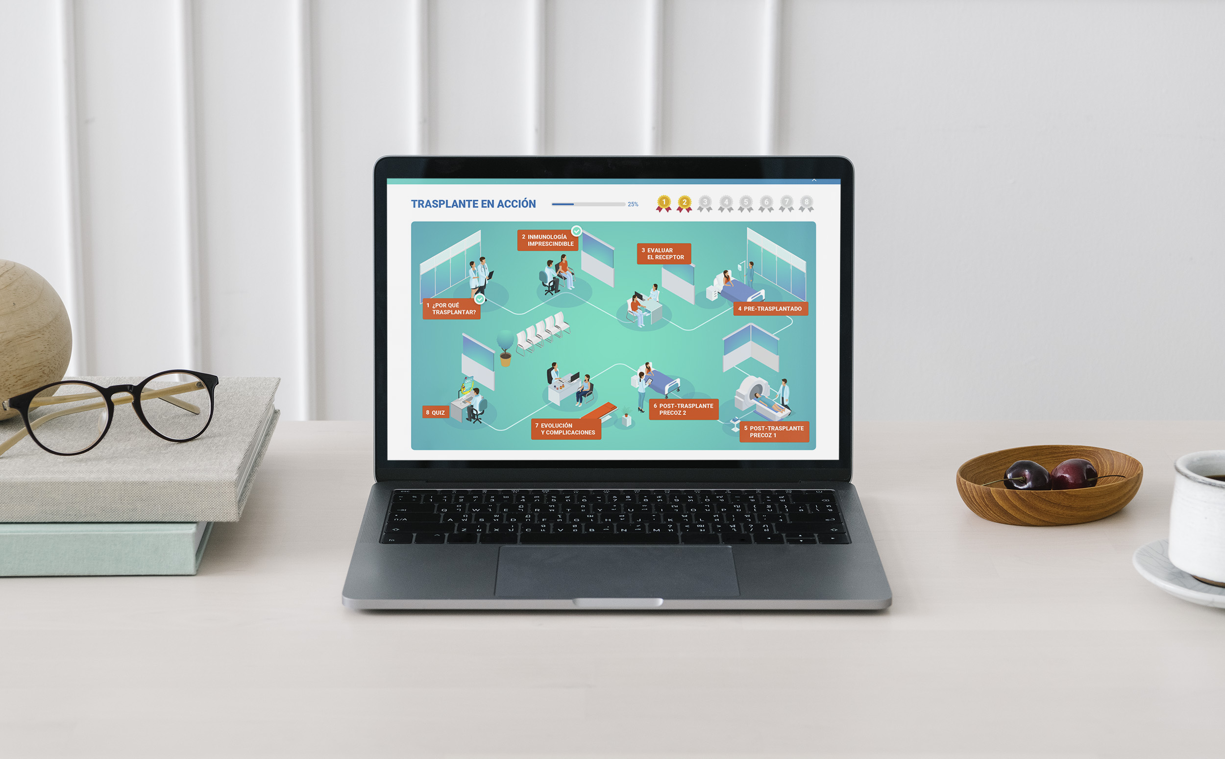 La barra de progreso así como las medallas obtenidas ayudan los más de 80 médicos que participan en la formación a saber de forma rápida su situación en el curso, además de incitar a avanzar en los contenidos.