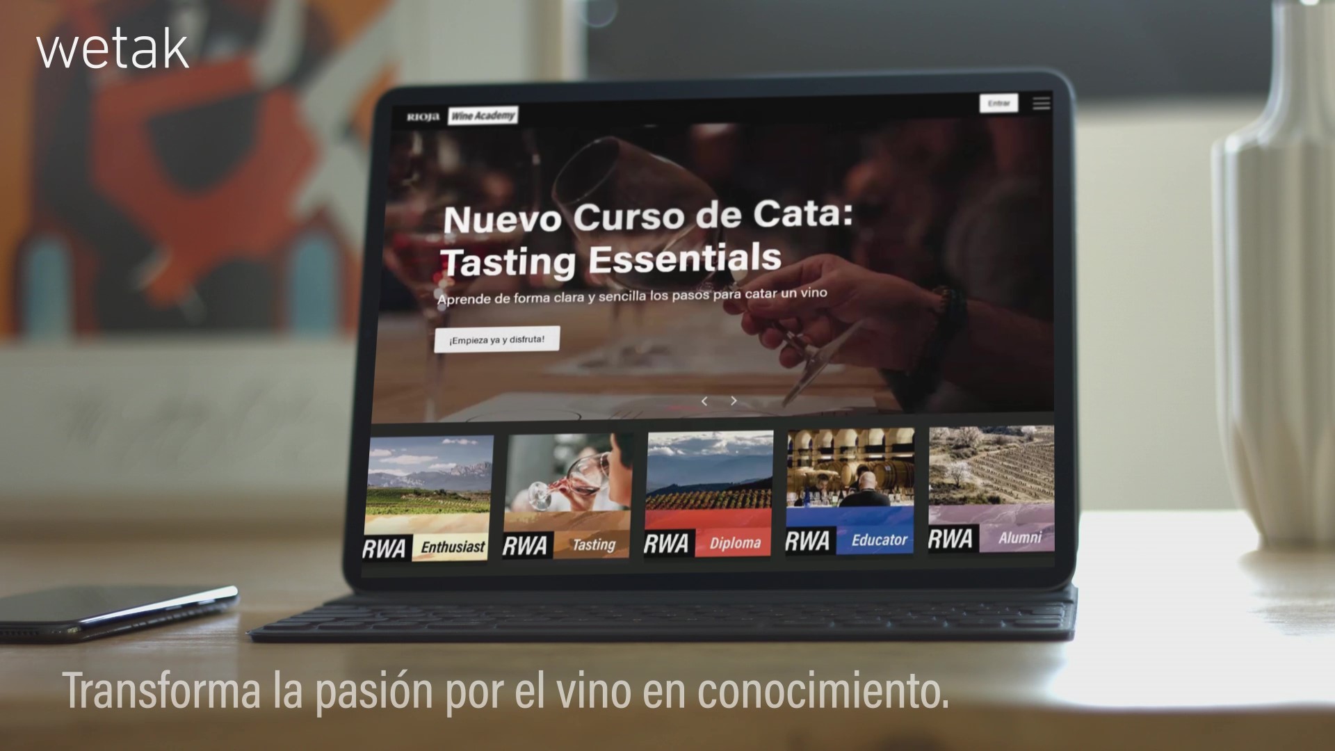 Los contenidos de los cursos se han creado con el conocimiento experto aportado por The Wine Studio, donde en Wetak hemos planteado un diseño instruccional y pedagógico muy visual e interactivo, donde destacan recursos audiovisuales de alta calidad y pruebas de auto-conocimiento interactivas que hacen entretenido el proceso de aprendizaje.